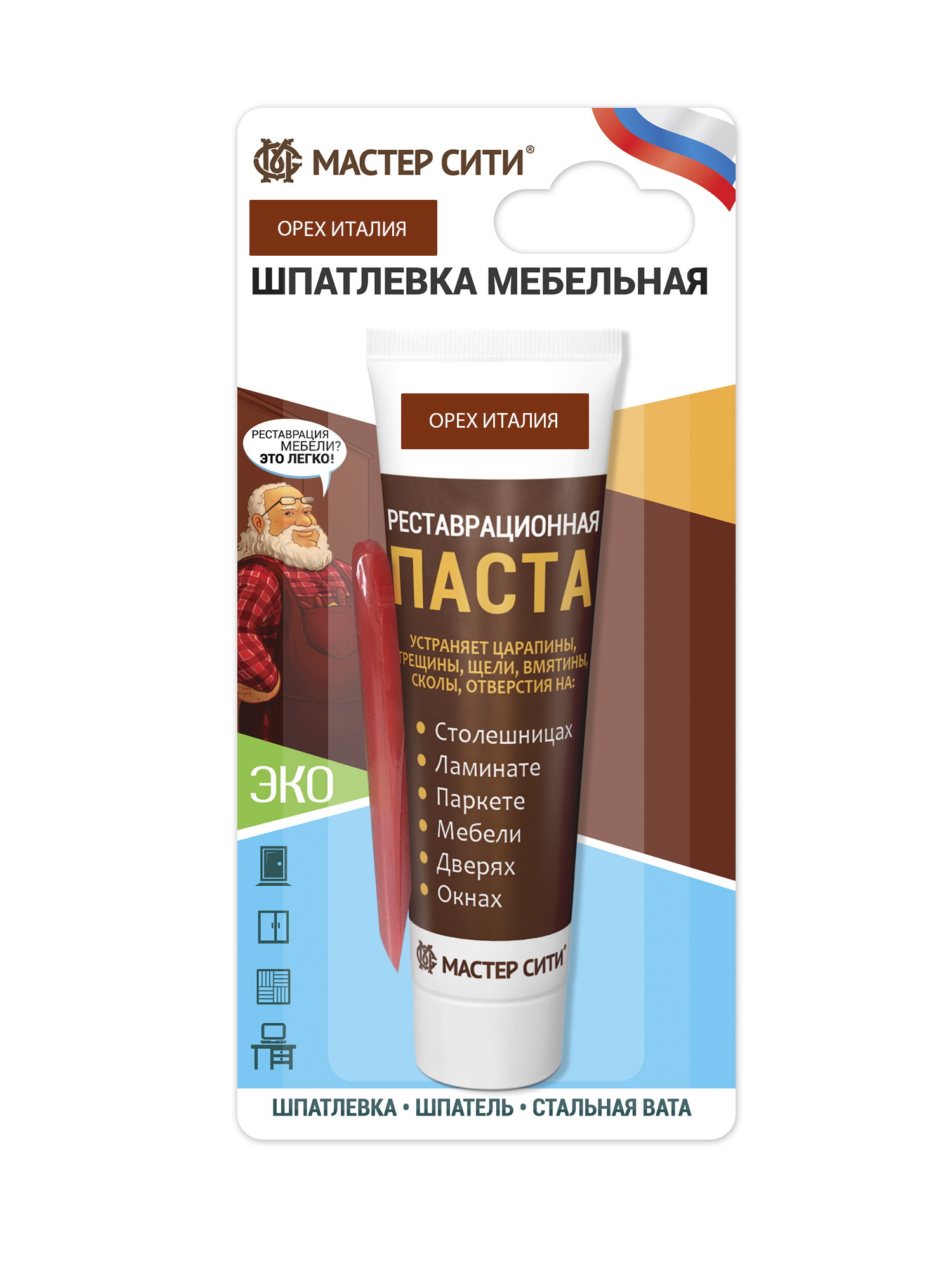 Реставрационная паста, МАСТЕР СИТИ, туба 30мл, 612 Орех италия