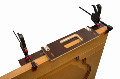 Имеет удлинённую базу и два ограничителя, позволяющих отмечать место врезки без рулетки (расстояние от края до места врезки петли 20 см), что экономит время и упрощает работу мастера.