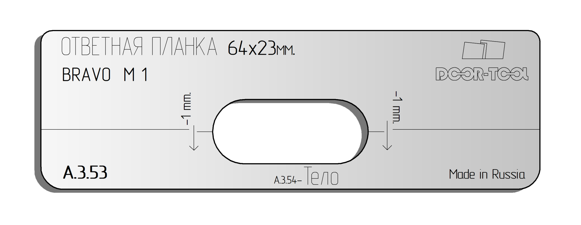 Вставка для шаблона DOOR-TOOL - Ответная планка. Магнит. Размер: 64х23мм (BRAVO М-1) Овал